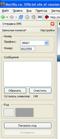 Xsms - расширение для браузера Mozilla Firefox, позволяющее отправлять SMS абонентам нескольких операторов сотовой связи. В настоящее время последняя версия поддерживает следующих операторов: * БиЛайн (BeeLine GSM, NC GSM, EXTEL GSM, Даль Телеком, DAMPS, K-Mobile). * МТС Московский регион (префиксы 7910, 7915, 7916, 7917, 7095). * Мегафон Москва (префиксы 7926, 7095). * МТС Санкт-Петербург (префиксы 7911, 7812). * Мегафон северо-запад (префиксы 7921, 7812). * МТС Ростов-на-Дону (префиксы 7902, 7917, 7918). * Мегафон-центр (префикс 7920). * МТС Тула (префикс 7910). * МТС Хабаровск (префикс 7914). * Мегафон Дальний Восток (префикс 7924). * Киевстар (префиксы 38039, 38063, 38067, 38068, 38096, 38097). * БайкалВестКом (префикс 7902). * TELE2 (префиксы 7904, 7908). * MT